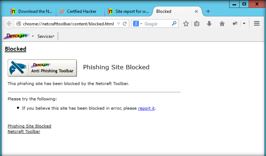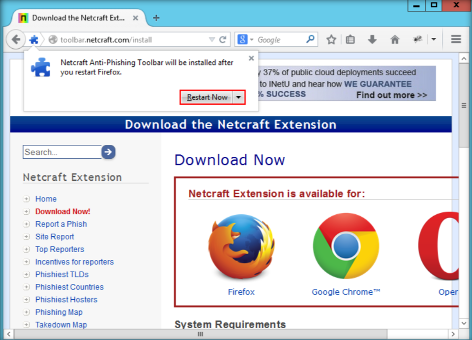 2. After relaunch the web browser, Netcraft Toolbar is now seen in browser window
