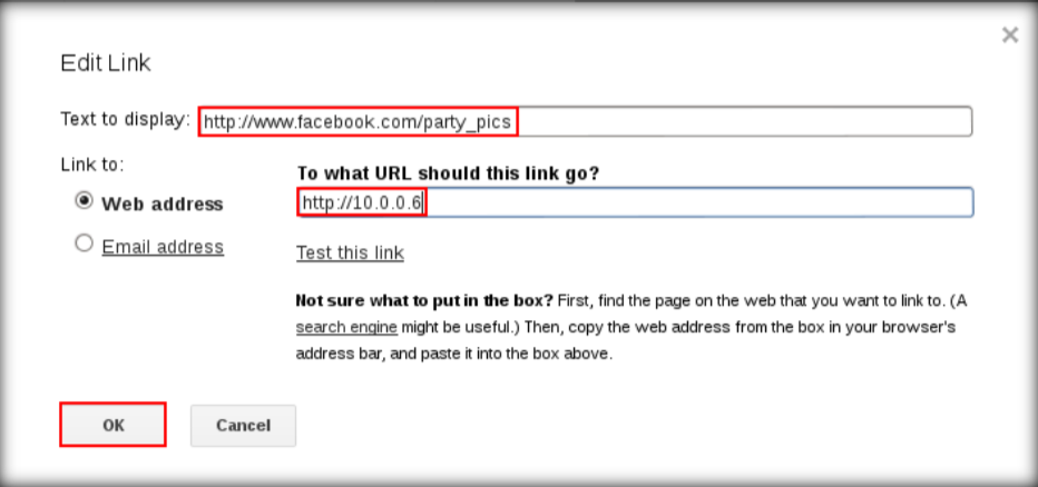 10. Allow credentical harvester attack to fetch infromation from the victim machine. Next step, try to send email to the target so he / she can open and fill the website. Edit the link before sending the email like this.